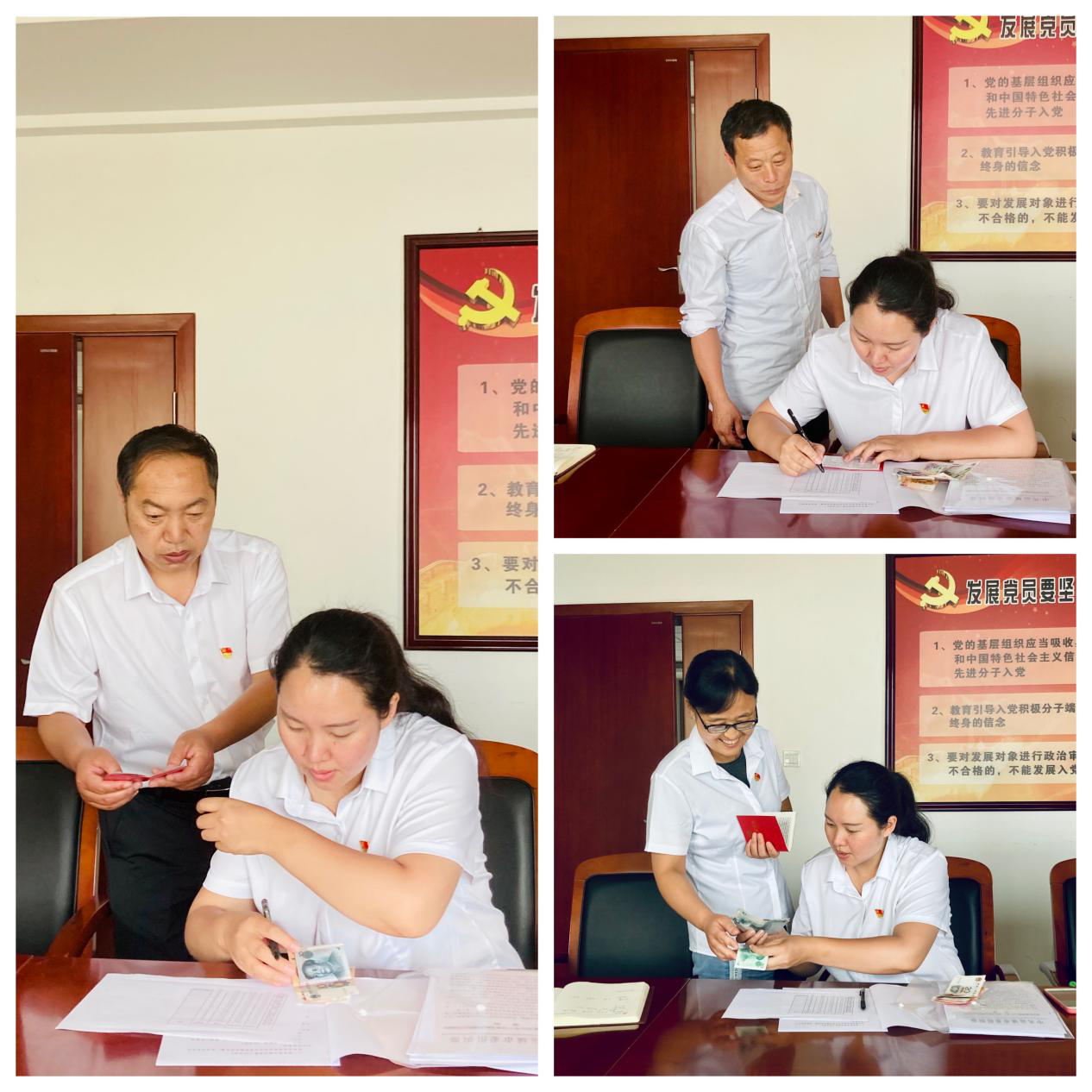 在下午的主題黨日上,黨員集中繳納了本月黨費(fèi),并在支部黨員大會(huì)記錄本和“三晉先鋒”軟件上簽到。