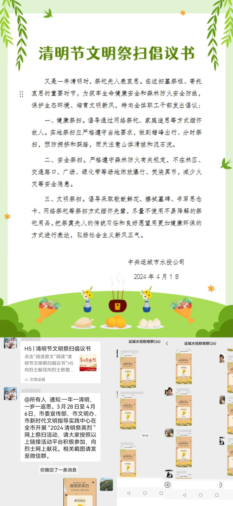 山河肅穆,英靈長眠,清明節(jié)祭掃革命先烈是中華民族的光榮傳統(tǒng)。為弘揚(yáng)中華民族優(yōu)良傳統(tǒng),培育文明新風(fēng),按照市文明委《關(guān)于組織開展“我們的節(jié)日”清明祭英烈主題活動的通知》要求,4月2日,公司開展“網(wǎng)上祭英烈”主題活動。