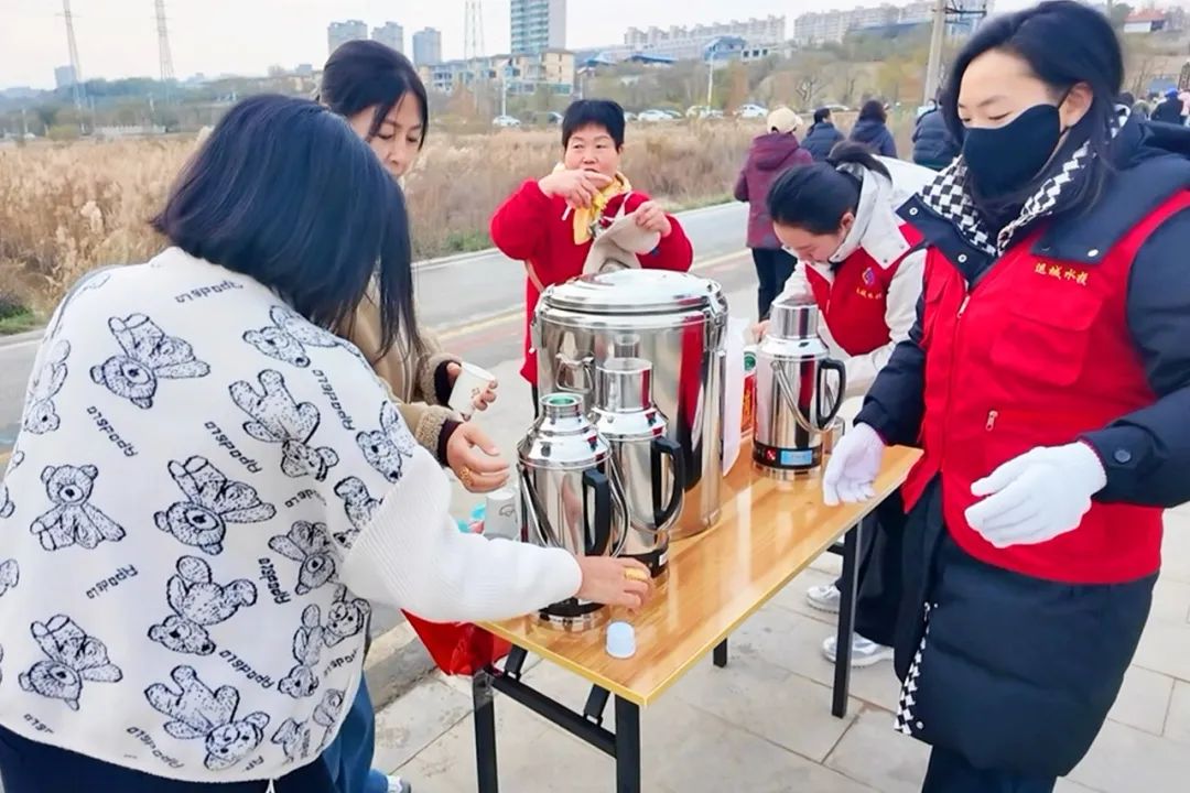 ▲市水投公司設(shè)立黨員先鋒崗,為游客提供免費熱水服務(wù)