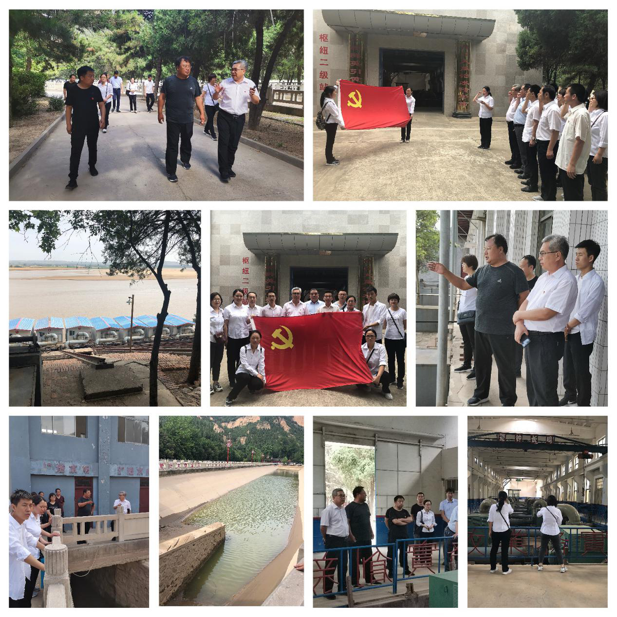 在大禹渡董局長的帶領(lǐng)下,同志們先后參觀了一級(jí)站、沉沙池、二級(jí)站,工作人員對(duì)灌區(qū)當(dāng)初的建設(shè)、泵站目前的運(yùn)行情況等進(jìn)行了詳細(xì)的介紹,之后雙方進(jìn)行了座談,徐睿書記指出,大禹渡在建站初期有三個(gè)特點(diǎn):一是移動(dòng)式泵車,二是沉沙池,三是二級(jí)站揚(yáng)程最高,有190多米。今天深入灌區(qū)與施工運(yùn)行管理人員進(jìn)行交流溝通,了解運(yùn)行中存在的問題,使施工管理運(yùn)行與設(shè)計(jì)有效銜接,促進(jìn)我們進(jìn)一步要提高用科學(xué)思維思考、用科學(xué)態(tài)度做事,真正做到黨建工作和設(shè)計(jì)任務(wù)深度融合,做到真學(xué)、真懂、真信、真用。我們要提高設(shè)計(jì)服務(wù)意識(shí),提升設(shè)計(jì)服務(wù)質(zhì)量,加強(qiáng)業(yè)務(wù)學(xué)習(xí),提升業(yè)務(wù)能力,使我院設(shè)計(jì)質(zhì)量上個(gè)新臺(tái)階。另外,同志們就工作中遇到的技術(shù)問題同大禹渡管理人員進(jìn)行了深入交流,黨員們還在黨旗下重溫入黨誓詞,不忘初心、牢記使命,更加堅(jiān)定了作為水利人的責(zé)任和擔(dān)當(dāng)。