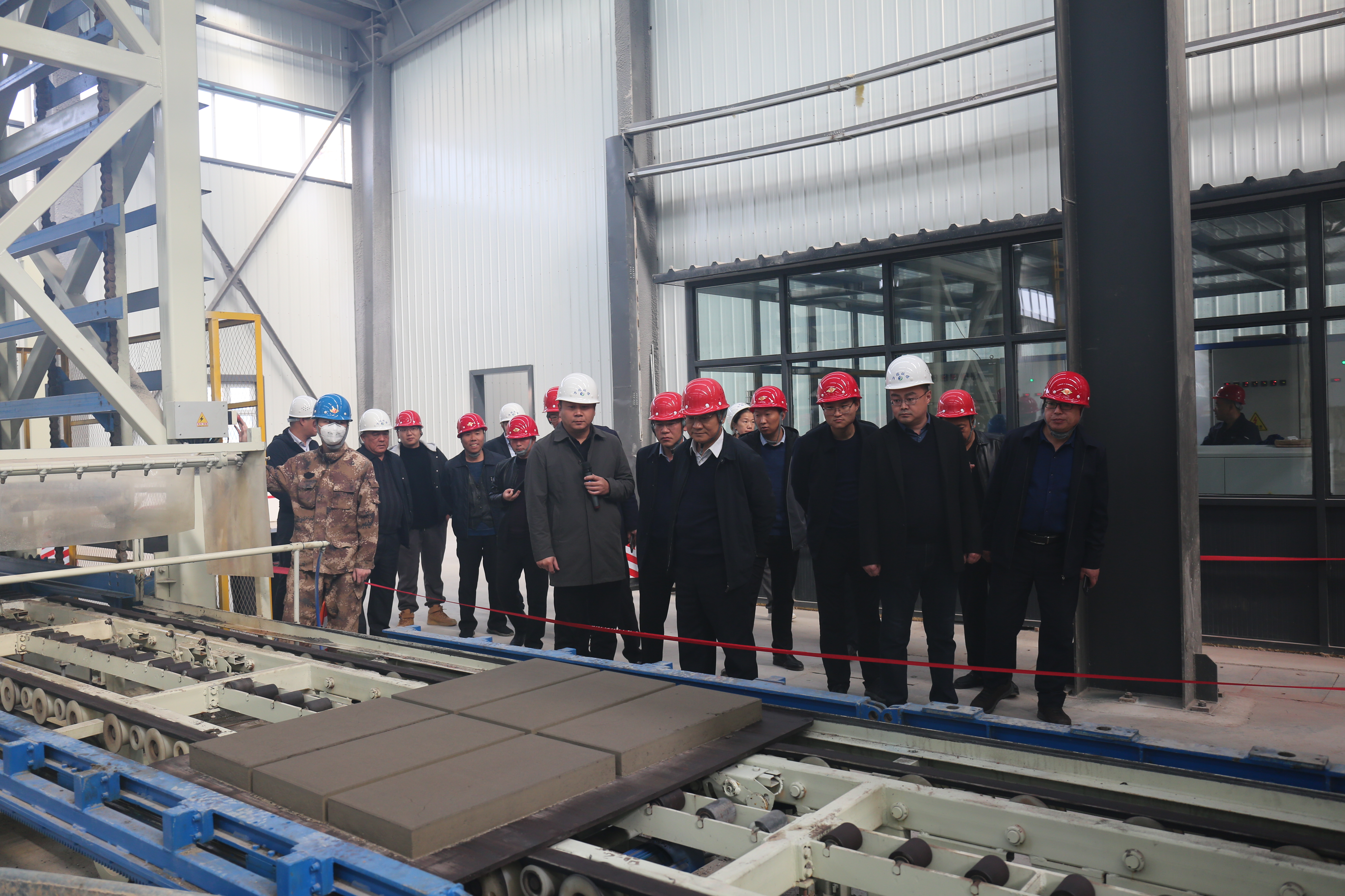 董事長(zhǎng)一行人在萬(wàn)瑞環(huán)保公司董事長(zhǎng)張海淼和其他公司高管陪同下參觀了生產(chǎn)車(chē)間,深入了解了各類(lèi)資源化產(chǎn)品生產(chǎn)線(xiàn)的具體生產(chǎn)工藝流程,對(duì)產(chǎn)品性能和質(zhì)量進(jìn)行了各方面交流。