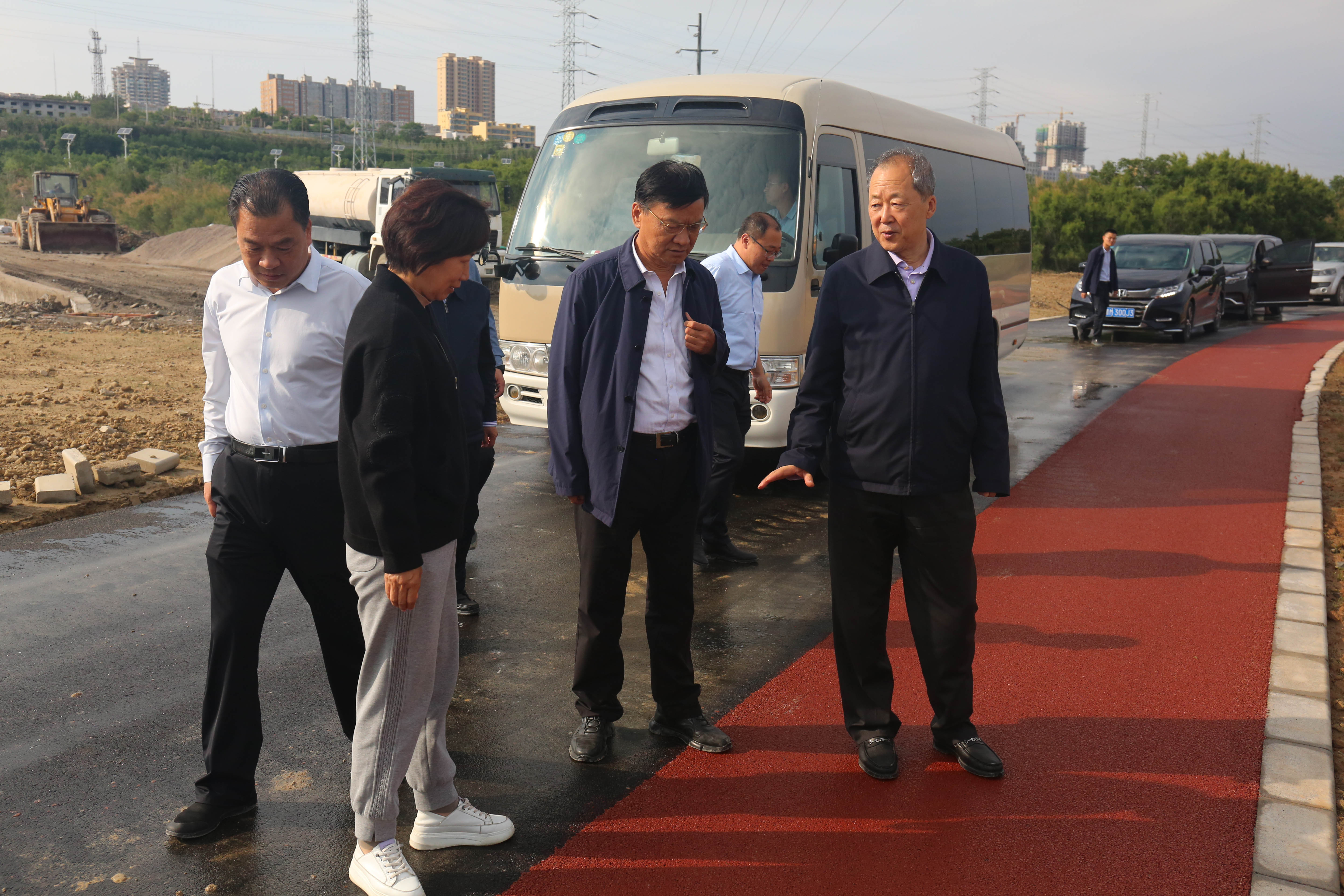 市委常委、副市長董旭光在鹽湖堤埝整治及生態(tài)修復項目工地查看環(huán)湖路鋪設情況