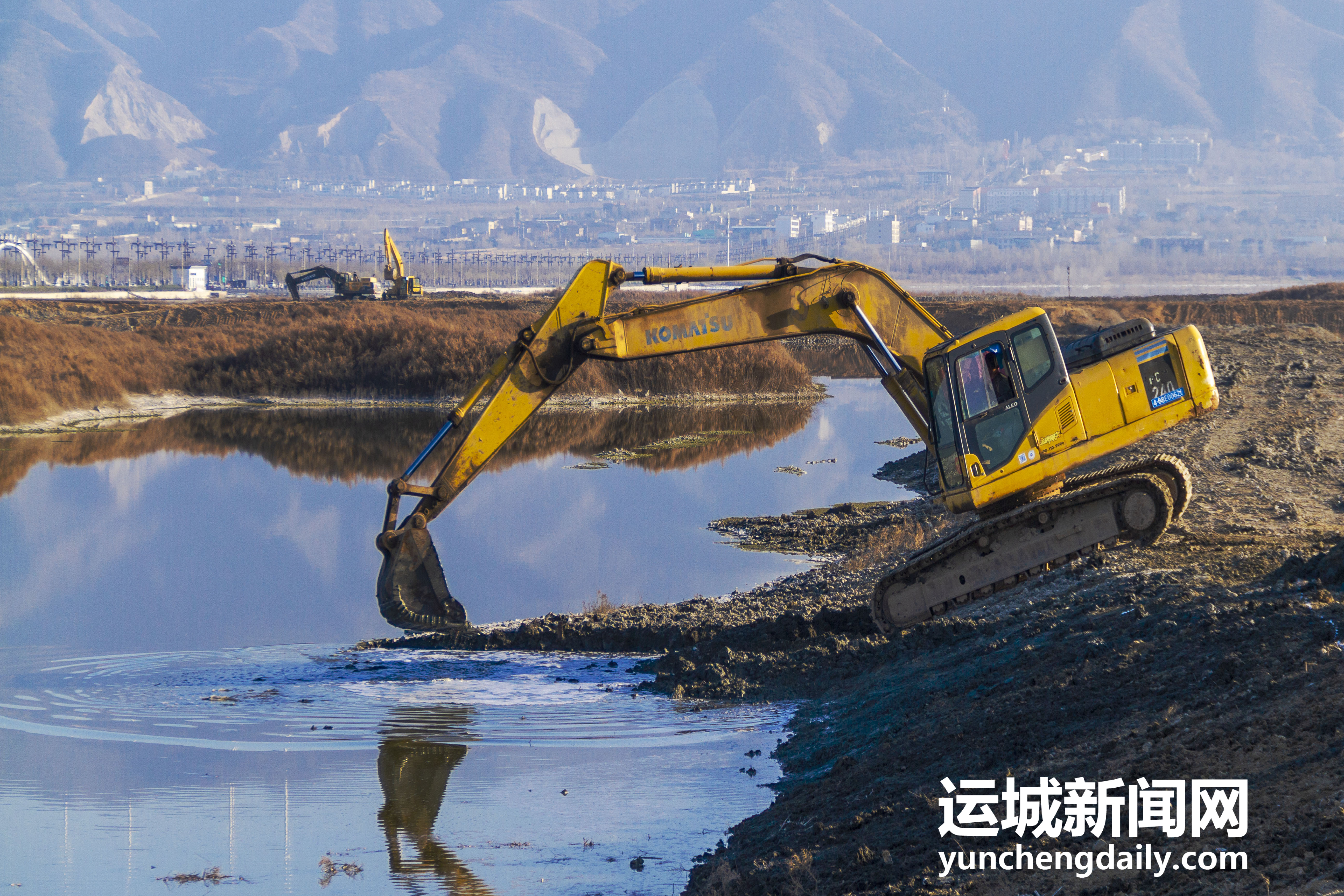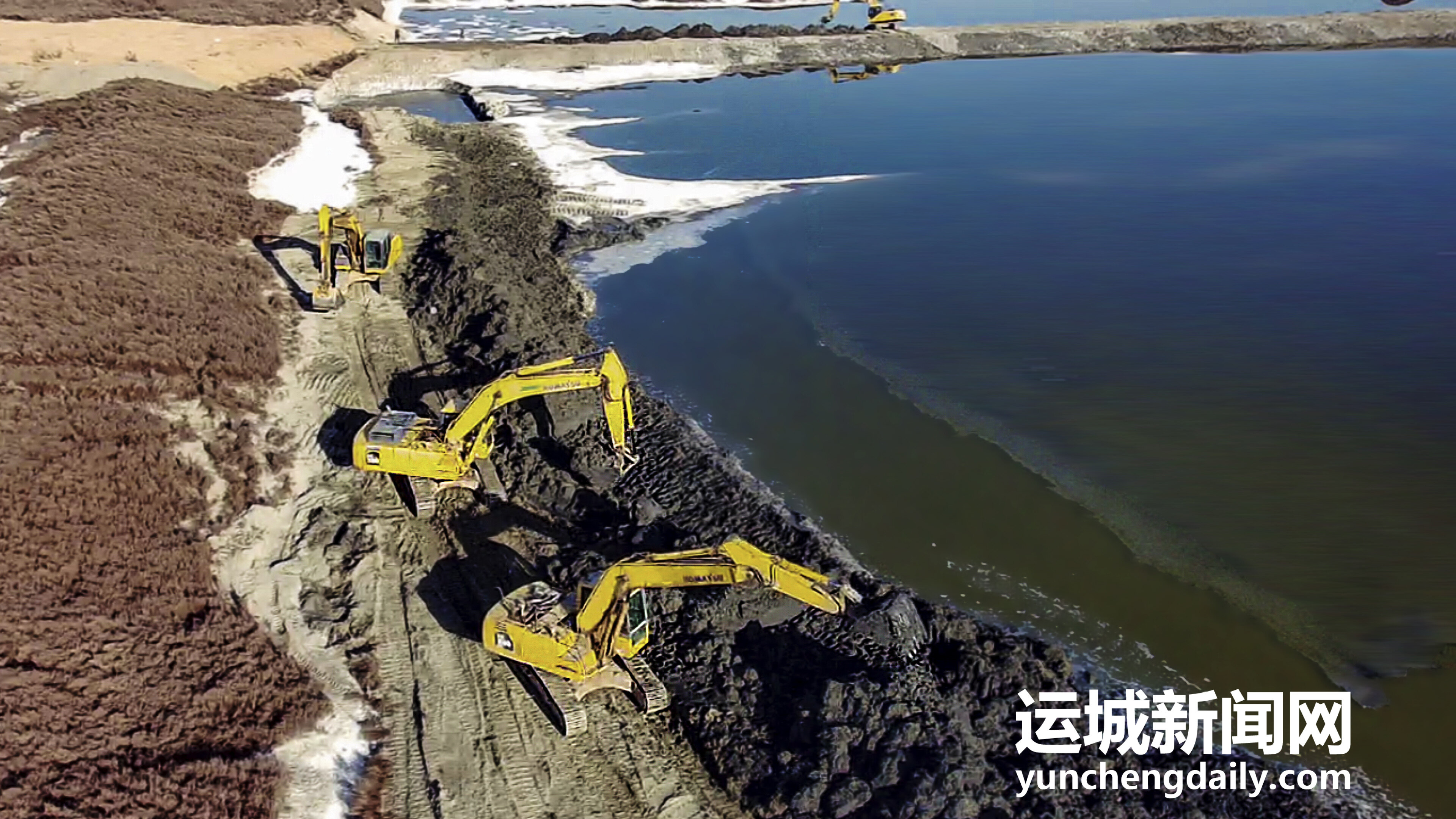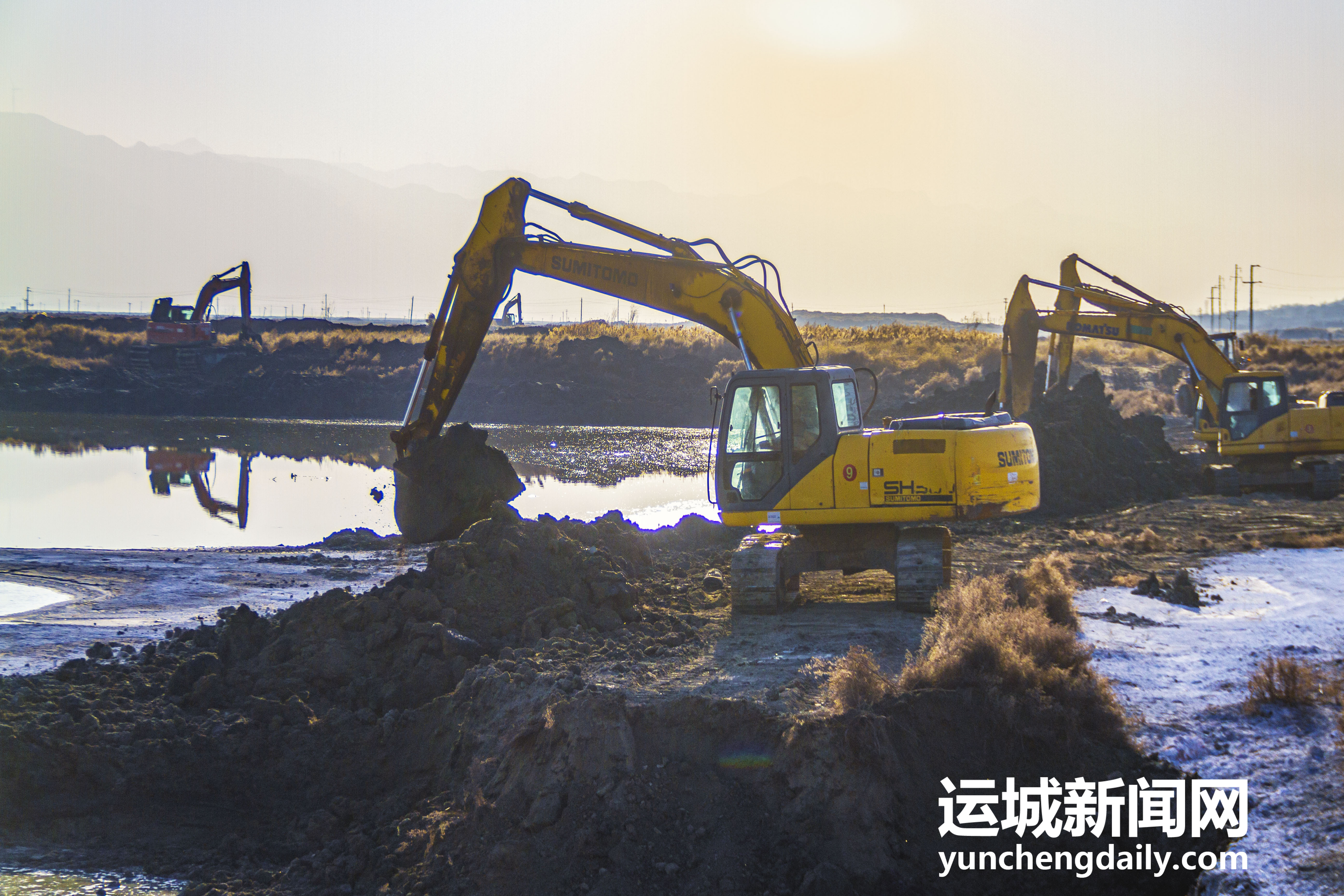 2022年12月18日,鹽湖景區(qū)內(nèi),工人師傅正在對(duì)堤埝進(jìn)行除險(xiǎn)加固。