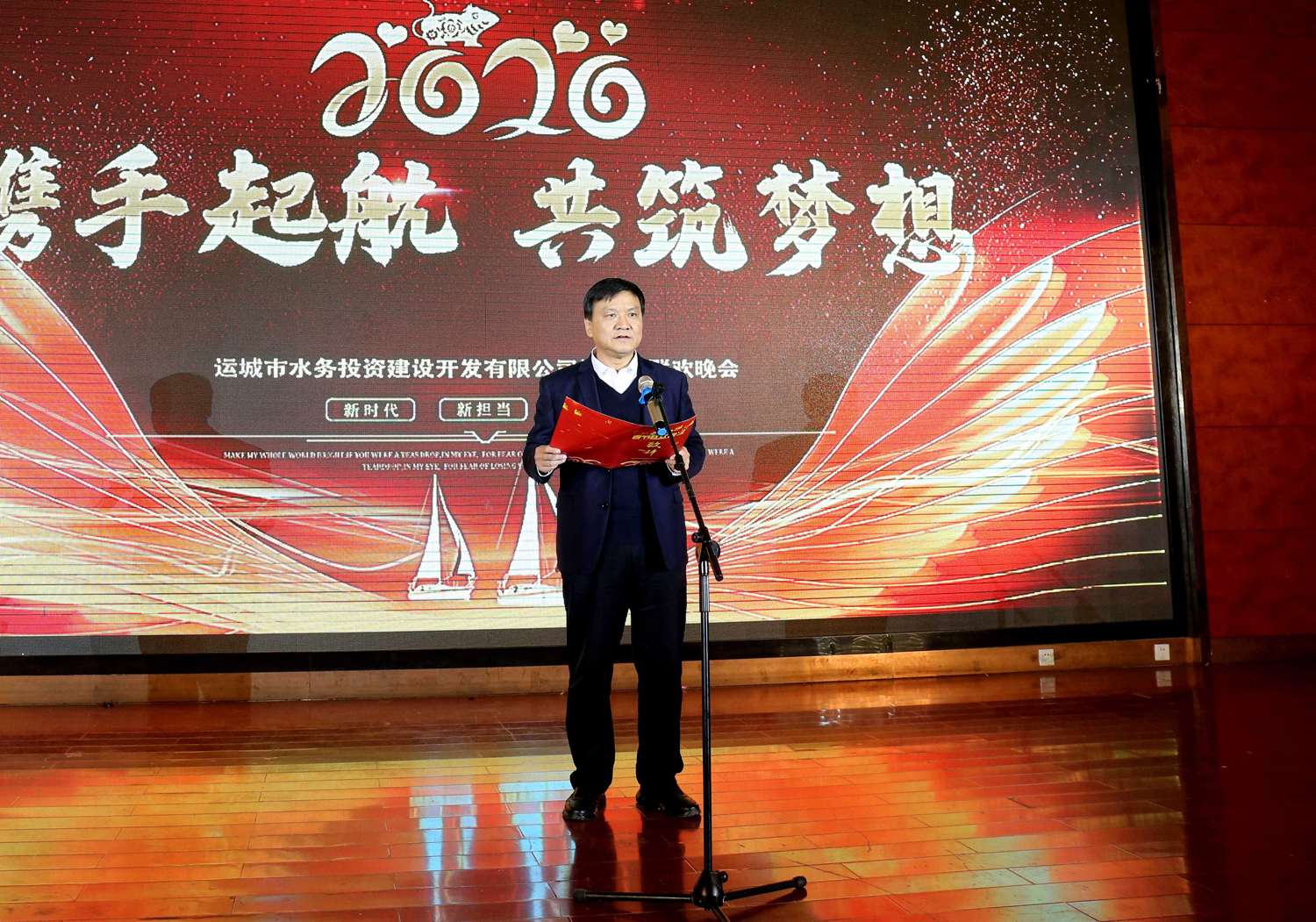 首先公司黨委書記、董事長兼總經(jīng)理崔作銘致新年賀詞,代表公司班子感謝市國資委、山西建工集團領導光臨晚會,感謝所有員工對公司發(fā)展的辛勤奮斗,并向全體人員致以節(jié)日的問候和祝福。回顧2019,水投公司成績顯著;展望2020,還需篤定心志負重前行。他指出要以習近平新時代中國特色社會主義思想為指引,貫徹落實習總書記“三篇光輝文獻”精神,緊緊圍繞市委市政府水系項目建設,不忘初心,牢記使命,以構(gòu)建生態(tài)水系,打造優(yōu)美環(huán)境,建設宜居城市,造福人民群眾的信念,只爭朝夕,不負韶華,積極推動水系項目建設。